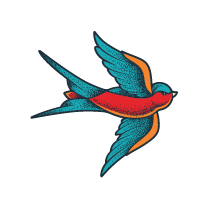 Featuring a bird in a playful dive, this design highlights joy and spontaneity. It captures the sheer delight of living in the moment and the unrestrained expression of happiness.