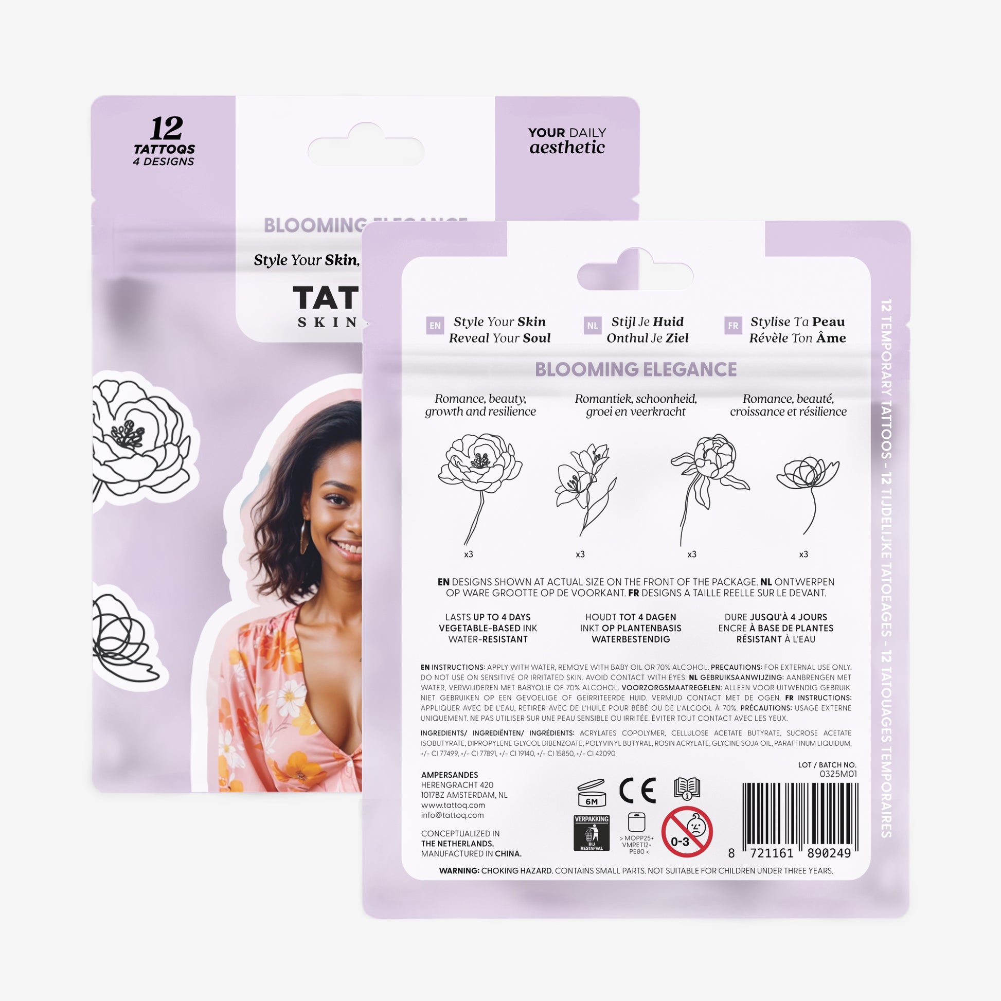 Each package includes 12 tattoos featuring four unique designs (three of each design), along with an instruction card and a meaning navigator to explore each design’s significance. Each tattoo lasts an average of two days when worn individually, offering up to 24 days of distinct skin art from a single pack.