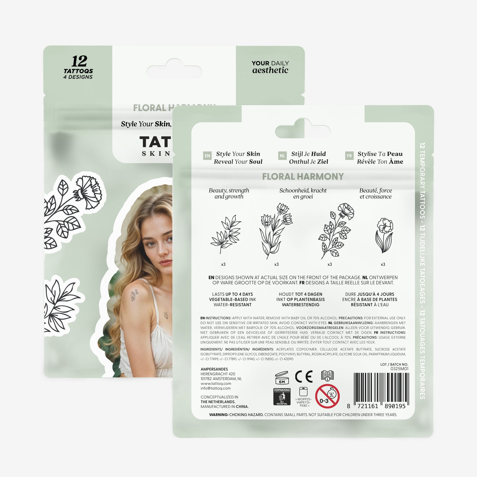 Each package includes 12 tattoos featuring four unique designs (three of each design), along with an instruction card and a meaning navigator to explore each design’s significance. Each tattoo lasts an average of two days when worn individually, offering up to 24 days of distinct skin art from a single pack.