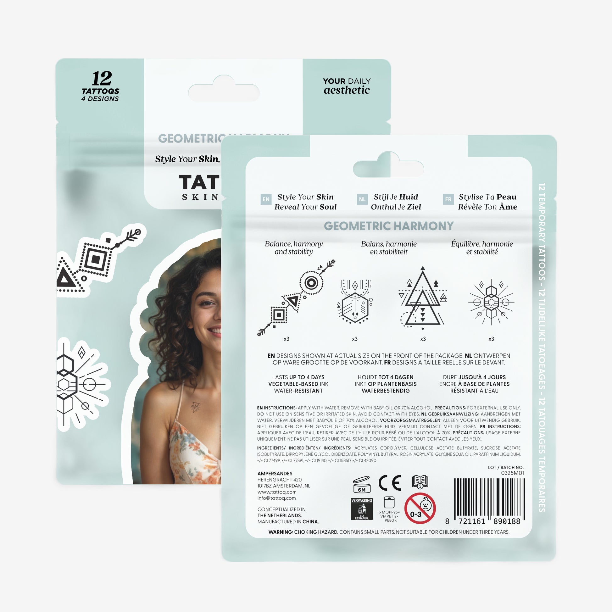 Each package includes 12 tattoos featuring four unique designs (three of each design), along with an instruction card and a meaning navigator to explore each design’s significance. Each tattoo lasts an average of two days when worn individually, offering up to 24 days of distinct skin art from a single pack.
