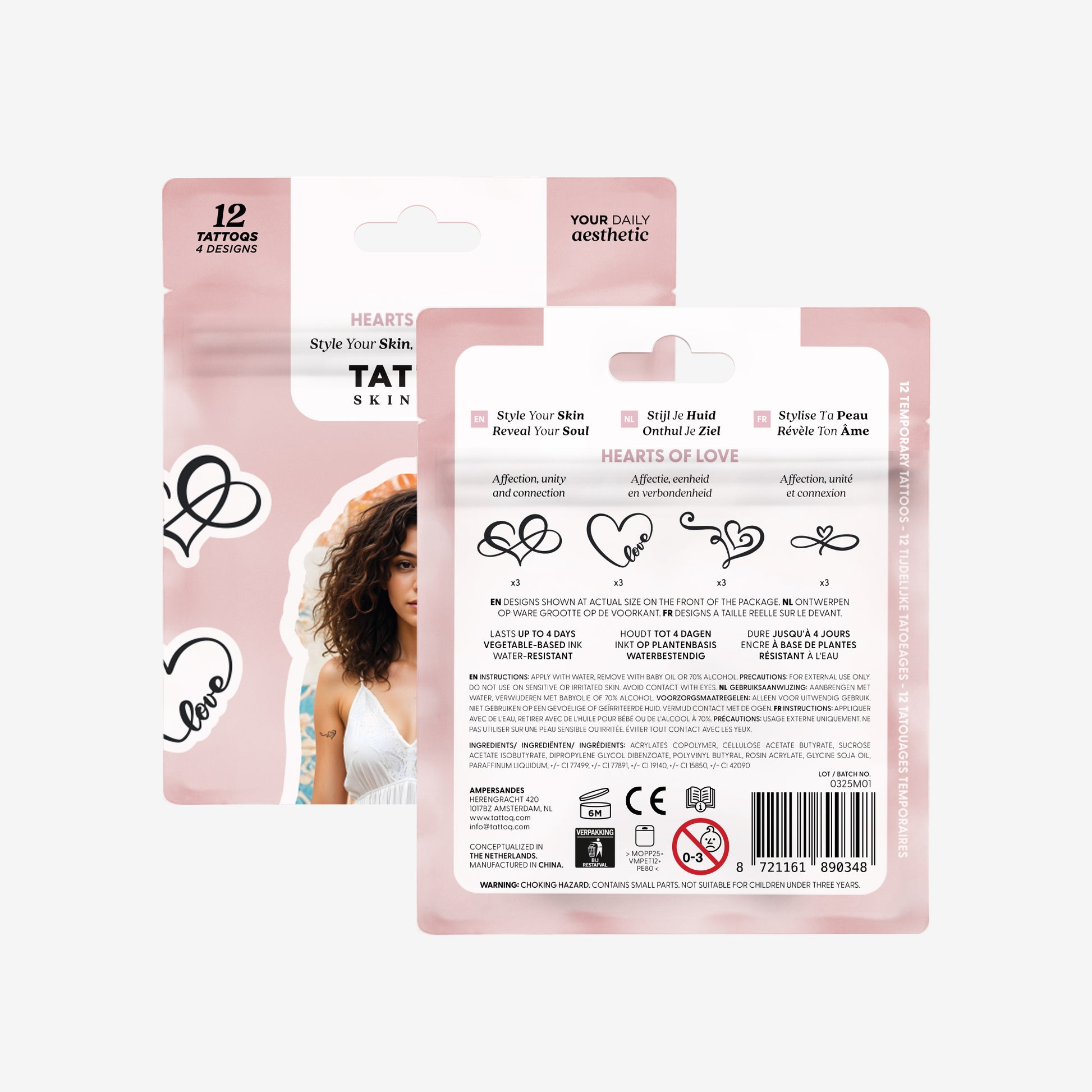 Each package includes 12 tattoos featuring four unique designs (three of each design), along with an instruction card and a meaning navigator to explore each design’s significance. Each tattoo lasts an average of two days when worn individually, offering up to 24 days of distinct skin art from a single pack.