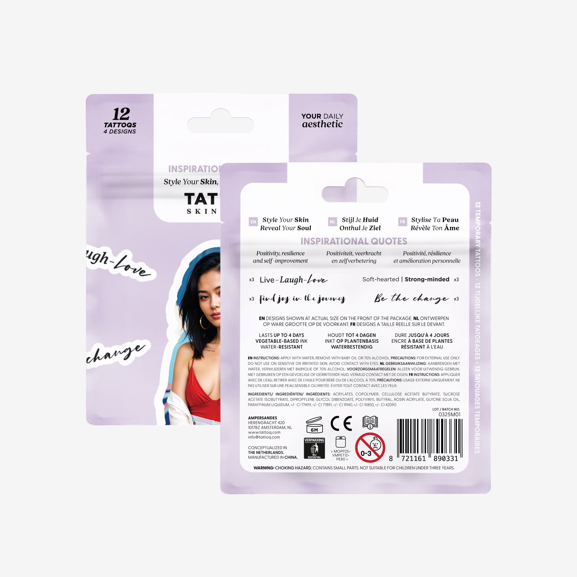 Each package includes 12 tattoos featuring four unique designs (three of each design), along with an instruction card and a meaning navigator to explore each design’s significance. Each tattoo lasts an average of two days when worn individually, offering up to 24 days of distinct skin art from a single pack.