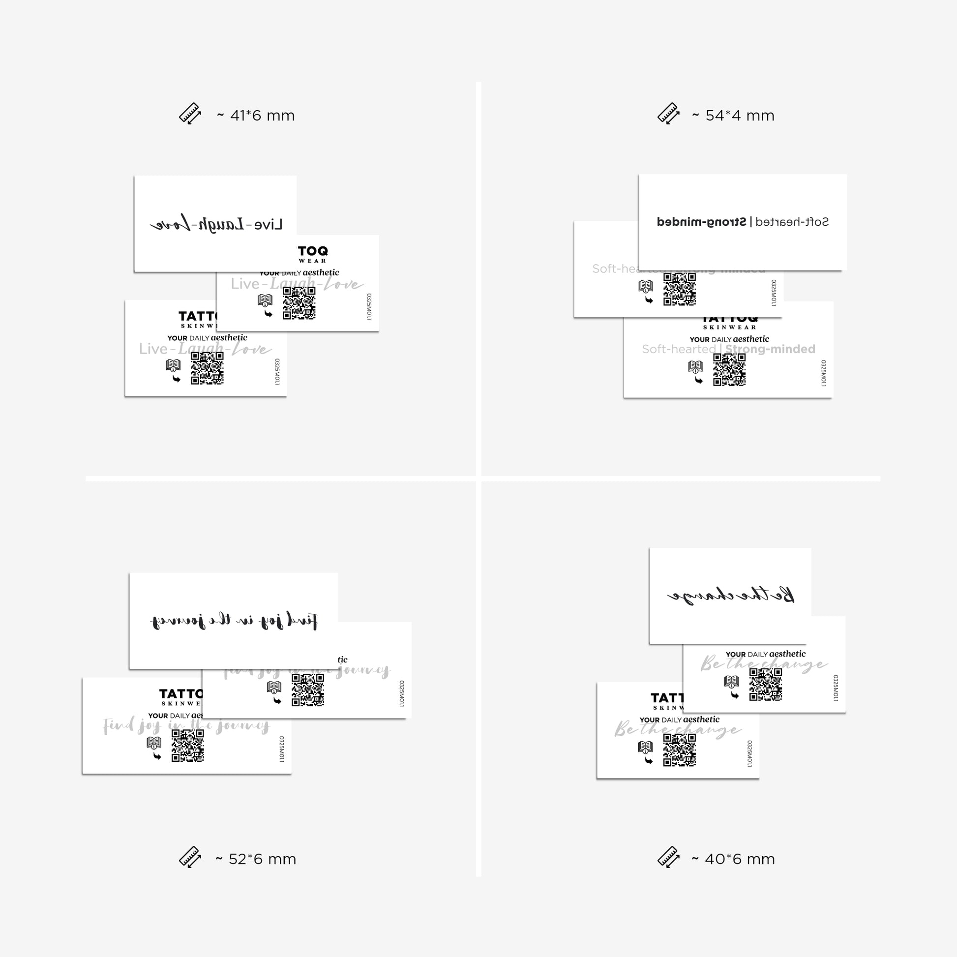 Application: Peel off the clear protective layer, place the tattoo face-down on clean, dry skin free from oils or lotions, and firmly press a damp cloth or sponge over the paper for about 25 seconds. Afterwards, gently slide the paper; if it moves easily, you’re ready! Lightly rinse the tattoo with water and allow it to air dry for the best results.