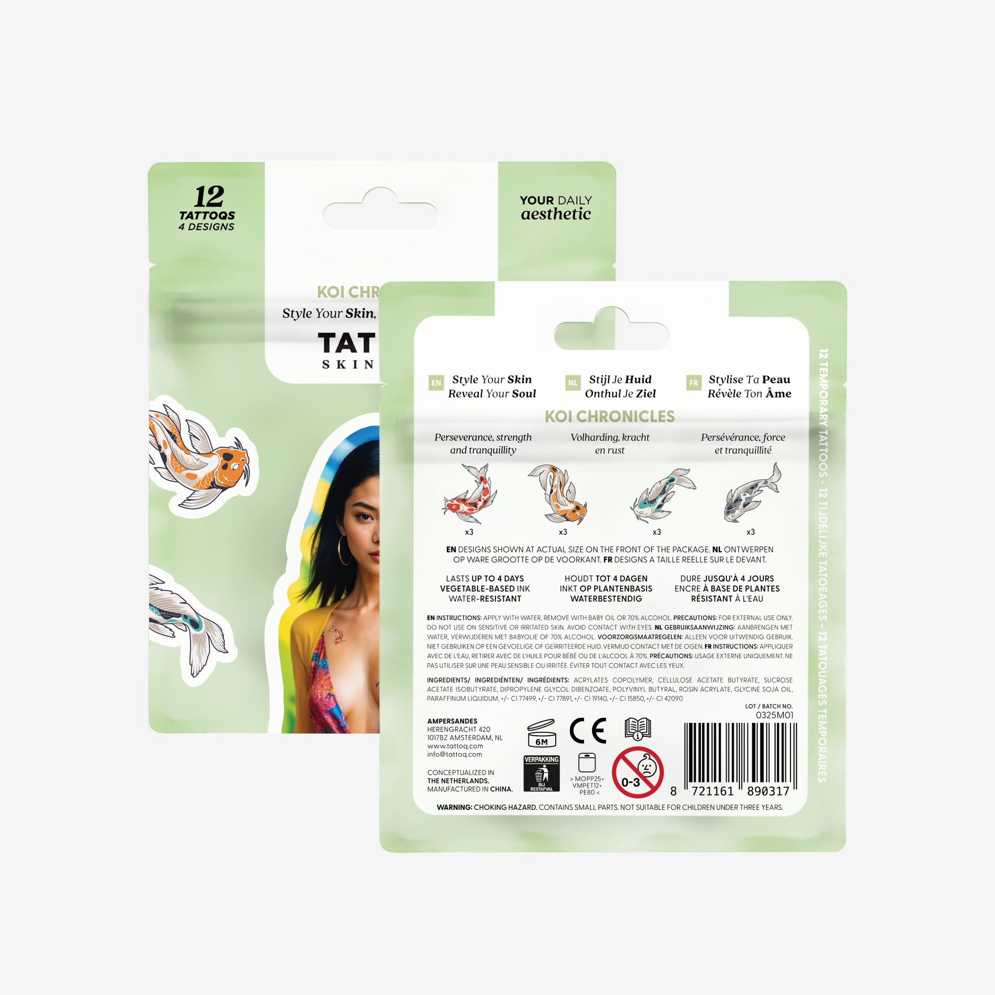 Each package includes 12 tattoos featuring four unique designs (three of each design), along with an instruction card and a meaning navigator to explore each design’s significance. Each tattoo lasts an average of two days when worn individually, offering up to 24 days of distinct skin art from a single pack.