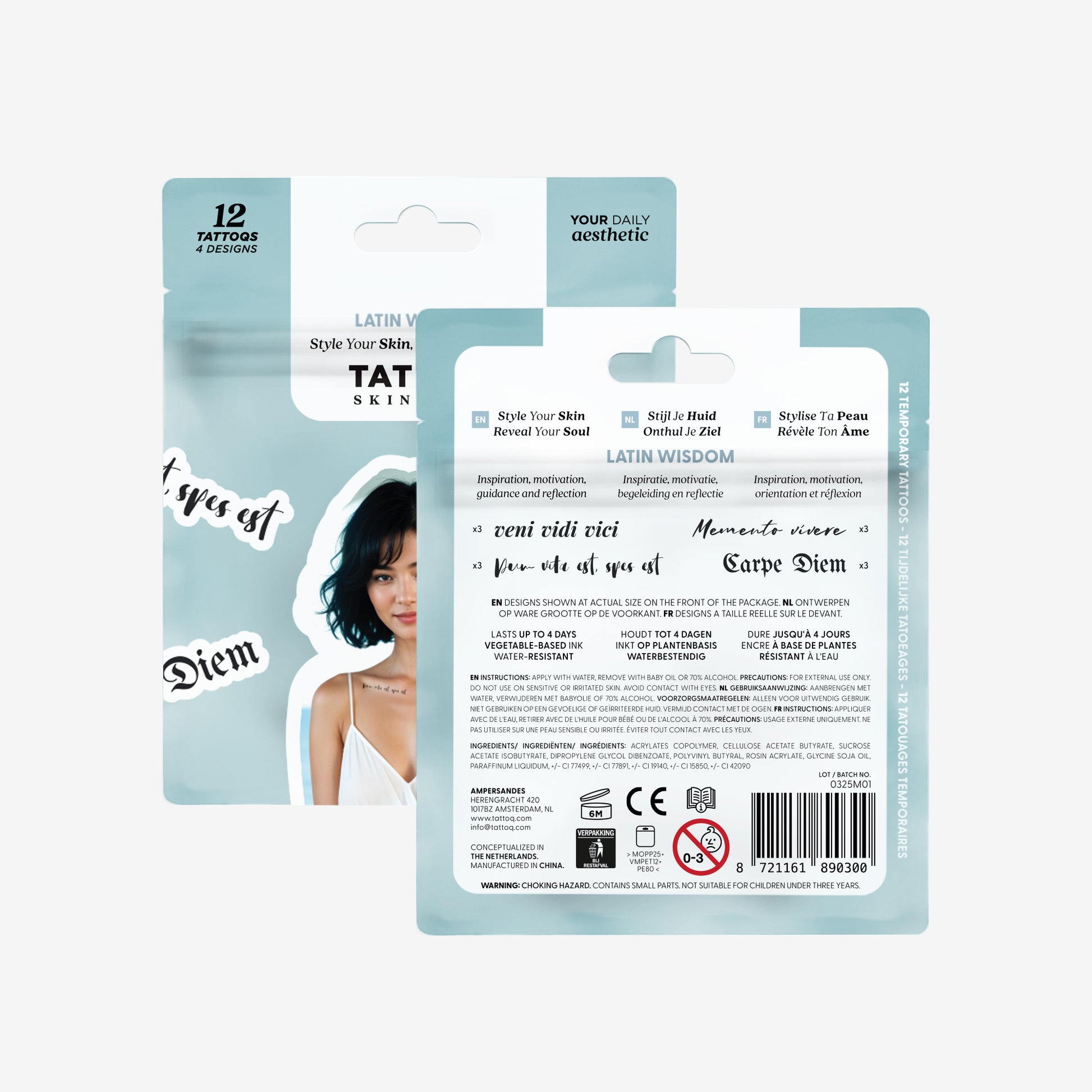 Each package includes 12 tattoos featuring four unique designs (three of each design), along with an instruction card and a meaning navigator to explore each design’s significance. Each tattoo lasts an average of two days when worn individually, offering up to 24 days of distinct skin art from a single pack.
