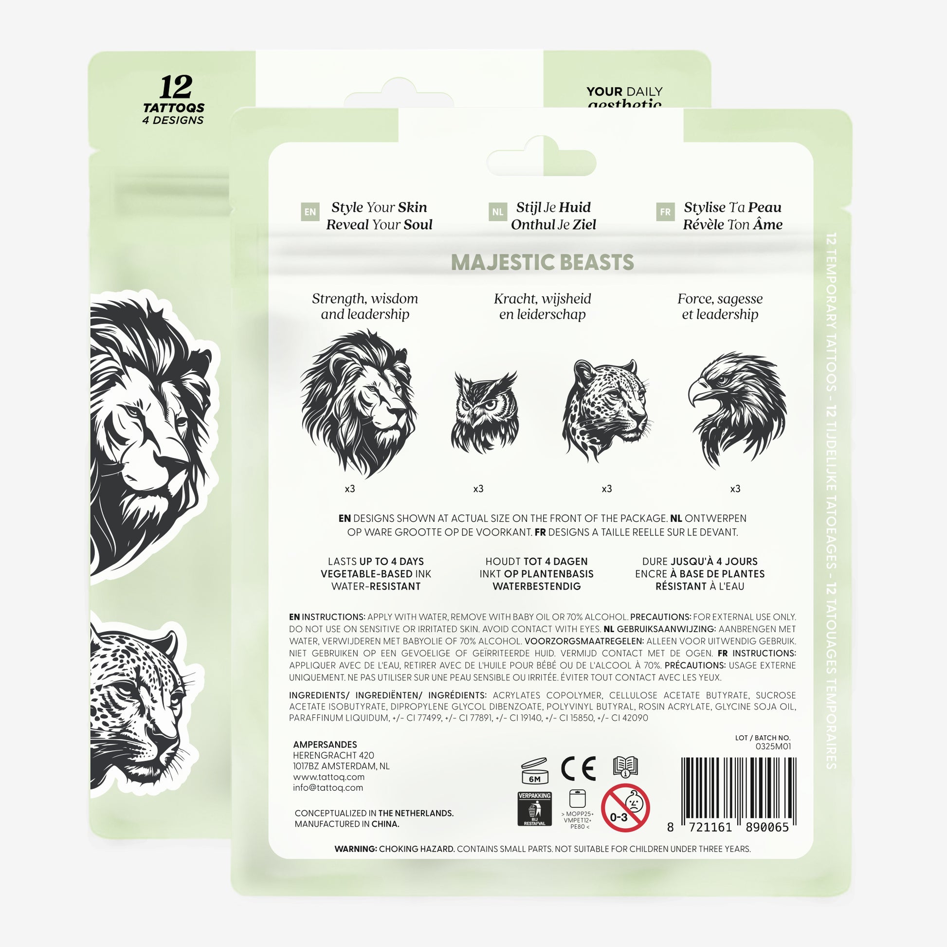 Each package includes 12 tattoos featuring four unique designs (three of each design), along with an instruction card and a meaning navigator to explore each design’s significance. Each tattoo lasts an average of two days when worn individually, offering up to 24 days of distinct skin art from a single pack.