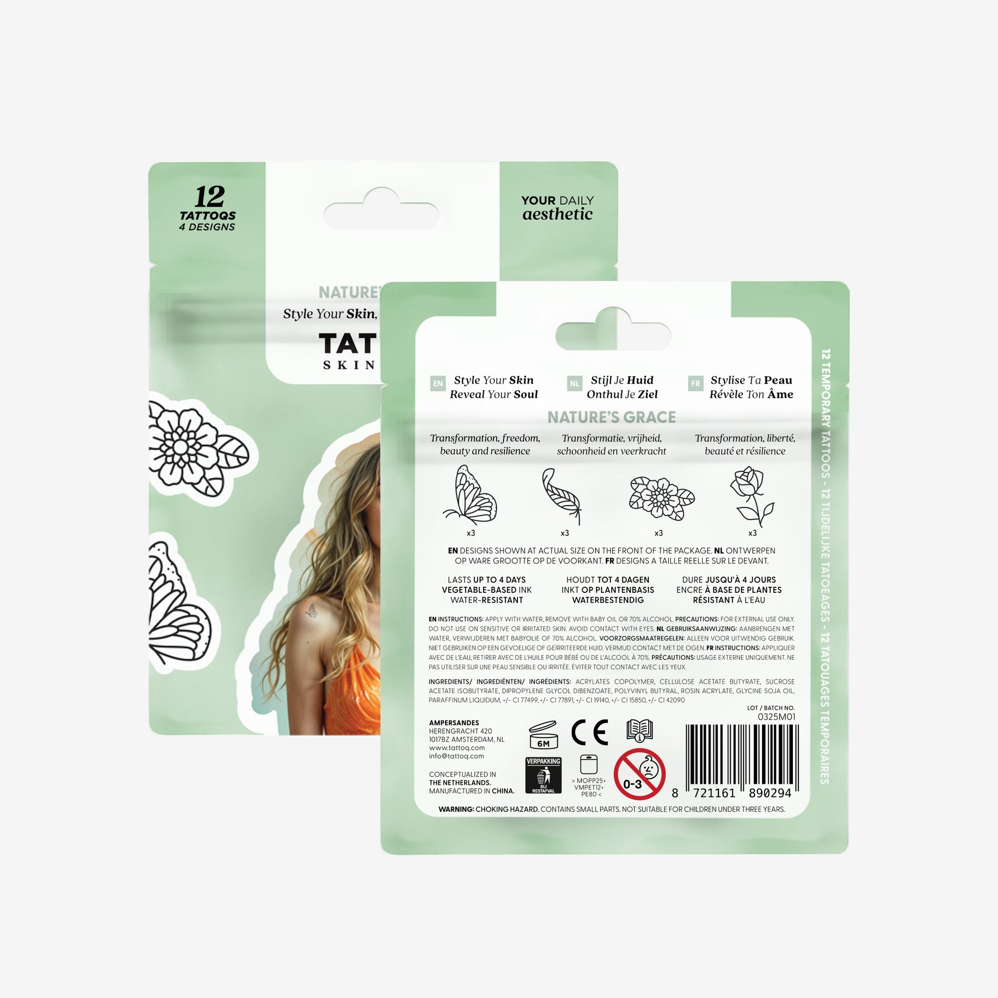 Each package includes 12 tattoos featuring four unique designs (three of each design), along with an instruction card and a meaning navigator to explore each design’s significance. Each tattoo lasts an average of two days when worn individually, offering up to 24 days of distinct skin art from a single pack.