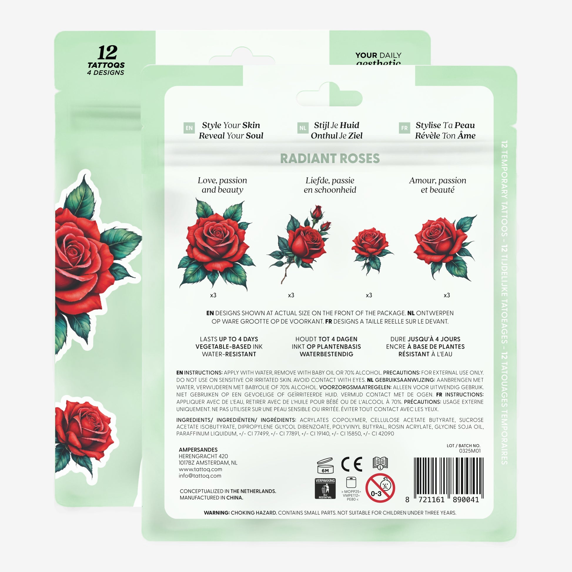 The Radiant Roses package features stunning illustrations of red roses, each symbolising different aspects of love, passion, and beauty.