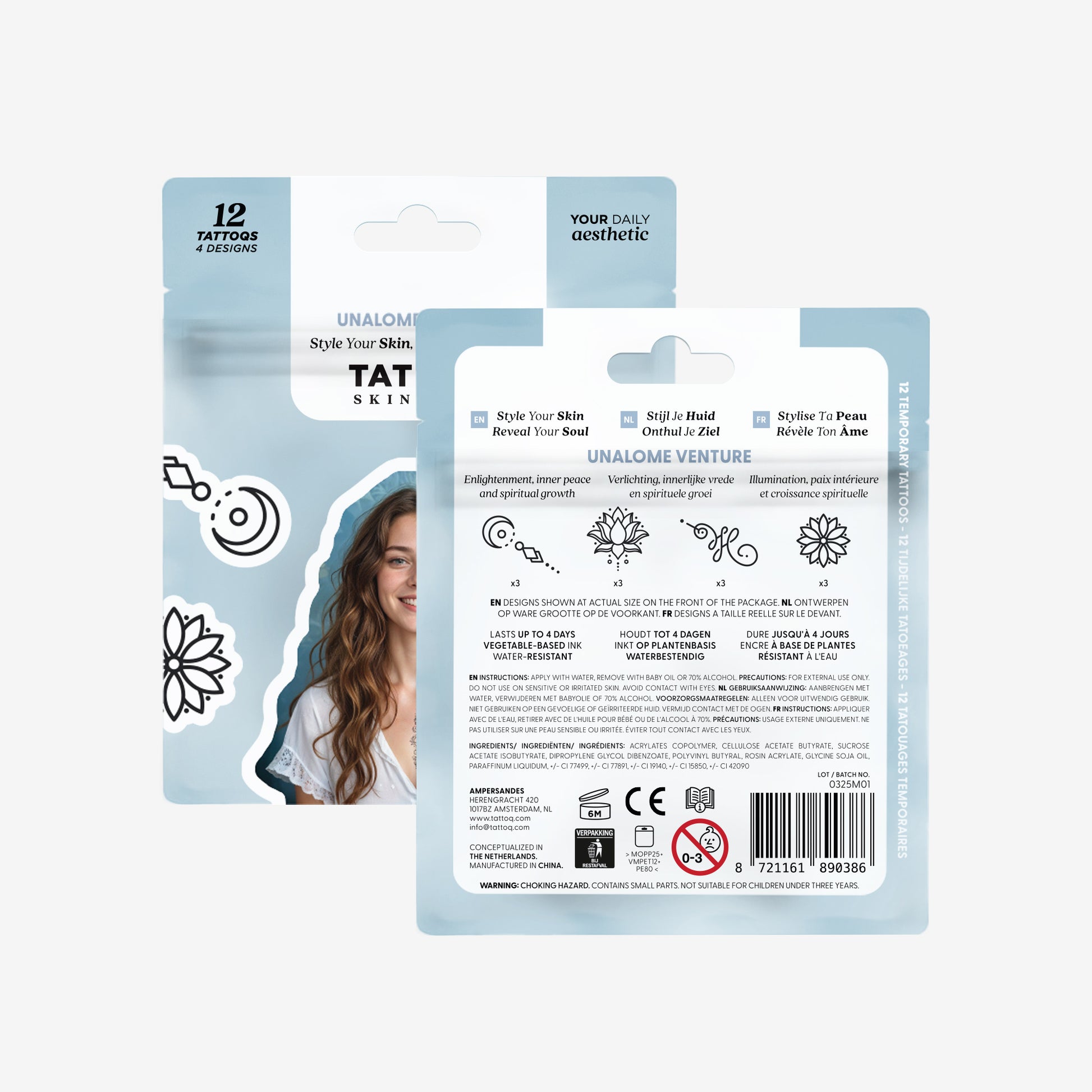 Each package includes 12 tattoos featuring four unique designs (three of each design), along with an instruction card and a meaning navigator to explore each design’s significance. Each tattoo lasts an average of two days when worn individually, offering up to 24 days of distinct skin art from a single pack.
